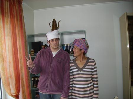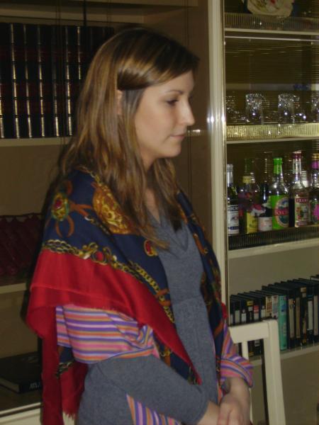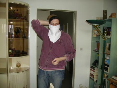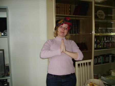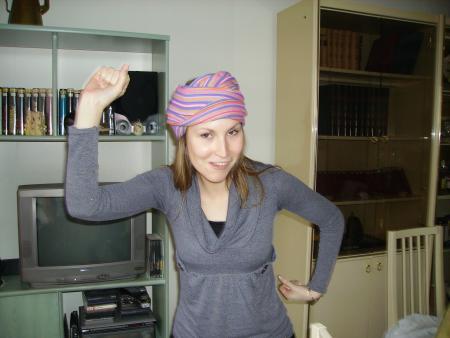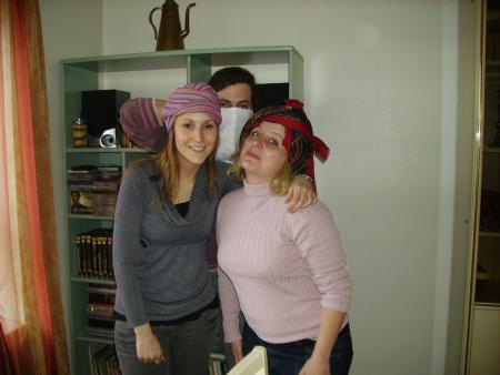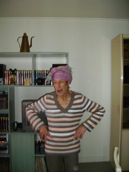 Nadège, très frileuse et "fashion" avec une superposition absolument inédite de foulard classique et de cheich égyptien...