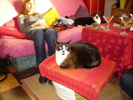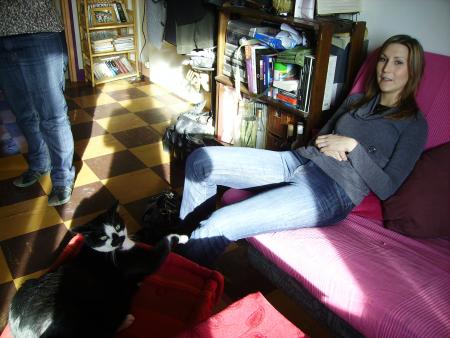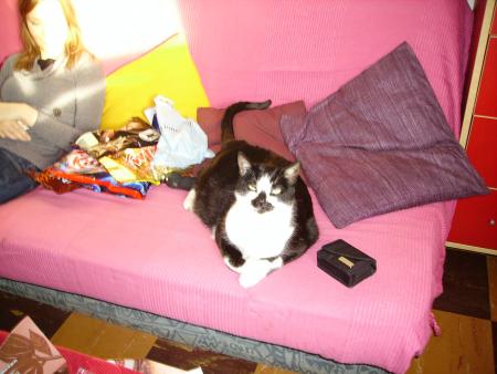 ...et un matou bien intrigué par la nouvelle venue dans la famille... manque de poils et de miaous, celle-là !!!