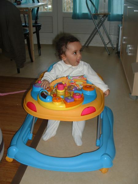 De baby-sitting, Chouchou et Loulou vous envoient les dernières images de la Grenouille, qui s'éclate en trotteur et rigole tout le temps...