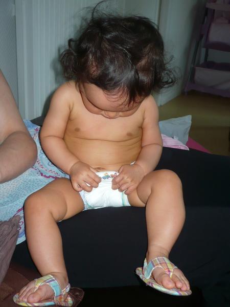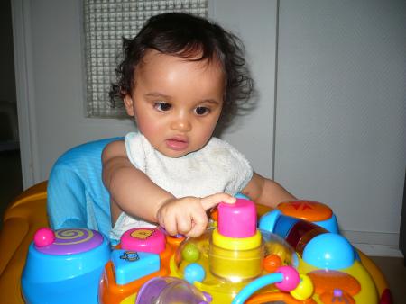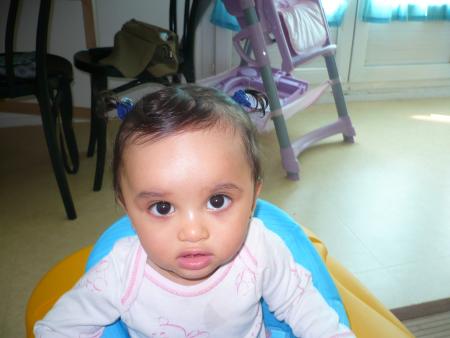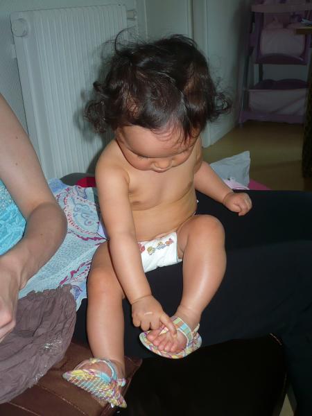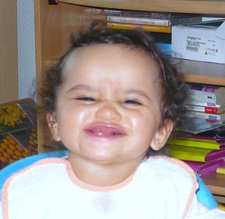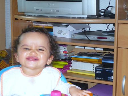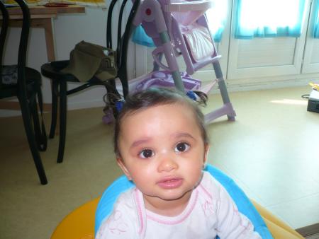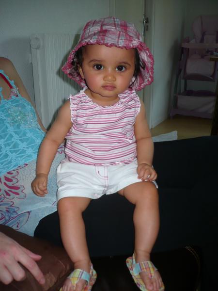 Avril 2009 (9 mois, passés de 2 jours même !!! La maman avoue que le temps lui semblait long, de ne pas voir pointer de jolie frimousse... et elle avait une pêche d'enfer, courait partout, c'est le futur ppa qui ne suivait pas et était crevé !!!)