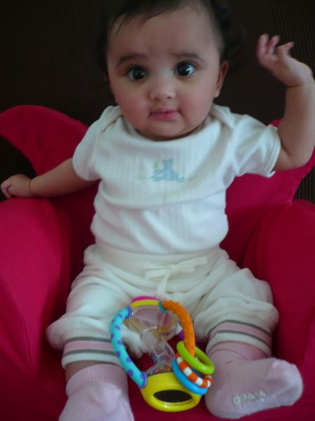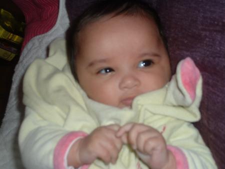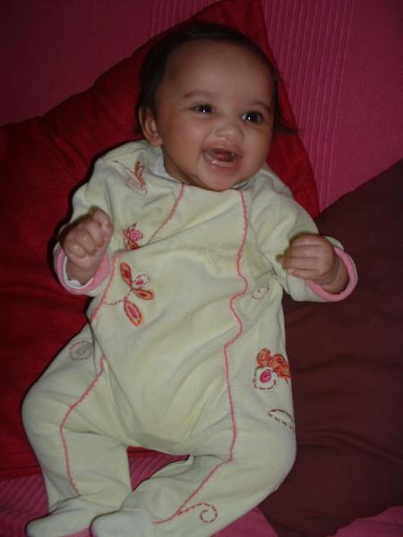 On peut passer des heures à l'admirer, tant elle est mignonne : elle commence à gazouiller de bon coeur, elle sourit et fait des bulles, et ça nous fait mourir de rire...