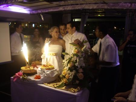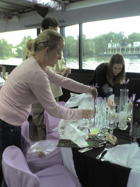 La veille du mariage (24/08/07), mise en place de la déco sur la péniche... (avec l'aide de Jocelyne, Papinou, Maminou et Nadège)
