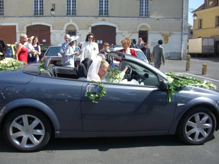 Ensuite, direction le fleuriste, pour récupérer le bouquet et la voiture décorée... Merci à Clem et Cécile pour la voiture, à Mamie Edith pour le superbe bouquet, dont nous mettrons les photos en ligne dès que nous aurons récupéré les fichiers (c'est Anne-So qui a les photos), et à Irène, la mamie de Dam, pour sa superbe composition !!!