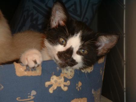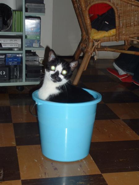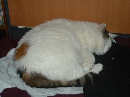 Gribouille (12 ans cette année, je crois, à charge pour sa maman de me corriger...enfin de corriger l'âge, hein, pas moi !), est ce qu'il convient d'appeler un chat de caractère. Selon ses humeurs, elle vous laissera la caresser ou décidera d'y mettre le holà (pas méchamment cela dit... enfin, chez le véto, dans son dossier, il est plus ou moins indiqué de se méfier du chat qui dort...). Reine des divans et des lits, le poil tricolore, cette petite bête raffole du poisson, et a pratiqué par le passé à différentes reprises la chute libre depuis la fenêtre du 4ème étage... Sa spécialité, et en cela elle rejoint ses cousins verrièrois, deployer toute sa majesté en plein milieu du passage pour être sûre que tout le monde l'a bien remarquée...